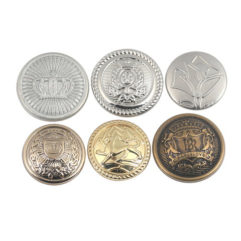 กระดุมเสื้อโค้ทแบบมีกระดุมเคลือบเงาชุบทองด้านกระดุมเสื้อเบลเซอร์อัลลอยสังกะสีแบบกำหนดเองโลโก้